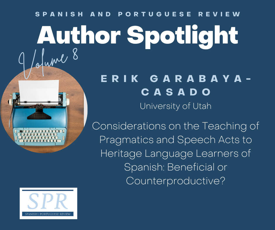 🎉 Congratulations! Erik Garabaya-Casado is this week’s Author Spotlight! Garabaya-Casado’s article “Considerations on the Teaching of Pragmatics and Speech Acts to Heritage Language Learners of Spanish: Beneficial or Counterproductive?” explores speech acts, an essential part of pragmatics, specifically in the realm of how explicit instruction of speech acts influences or affects first, second, and heritage language learners. The author describes linguistic and acquisitional phenomena, while emphasizing the role of pragmatics in language development, and offers a literature review of speech acts and heritage language learners. Garabaya-Casado also provides ideas and insight into future realms of research that could make important contributions to Spanish as a heritage language acquisition and teaching. The author’s contributions are insightful, thought-provoking, and well-researched! Great job on an excellent article!
